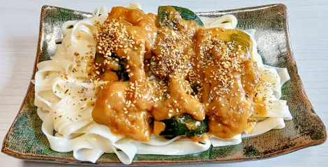 冬瓜のあんかけ、大好きです〜 半分皮は剥いちゃう?けどズッキーニの皮は栄養豊富だから良いんですね〜 夏に冬瓜を食べる事が多いのになんで冬、瓜なのかなぁ?🤔と検索しちゃった〰️ ひもかわうどんの小麦の味が良いんですね〜♪ 私は揖保の糸のうどんを良く通販で買ってます😉