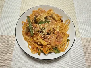 ナポリタンに何かける? エリンギたっぷりのナポリタンを作りました(^^)ナポリタンには何をかけて食べますか?粉チーズ派?黒コショウ派?両方\( ˆoˆ )/
