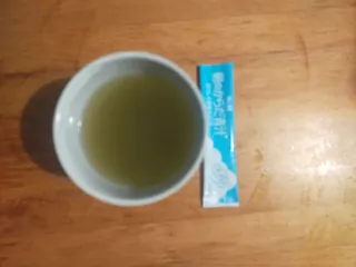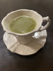 ホット・青汁 「朝のからだ青汁」をまずは、スタンダードな飲み方のホット・青汁で味わってみました。湯気で、レンズが曇ってしまいピンボケ気味で申し訳ありません。色々調べてみると青汁のホットは、栄養損失しないように30〜40℃程度のぬるま湯がベストとのこと。 見た目は、緑茶、匂いは、ほんのり甘酸っぱい香り、味