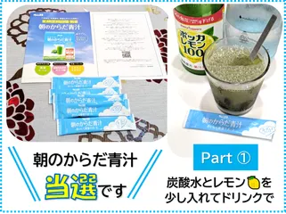 「朝のからだ青汁」モニター当選✨早速頂きました♪ 「朝のからだ青汁」モニターキャンペーン当選ですヽ(^o^)丿とっても嬉しいです♡ありがとうございます! 一緒に届いたリーフレットを参考にしました。✿まずはシンプルに「朝のからだ青汁」を炭酸水とレモン汁を入れてドリンクで飲みました!✿次に「朝のからだ青汁」に甘酒とヨーグルトを入れてまぜませし