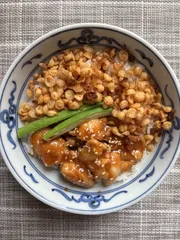 鶏味噌煮と揚げ玉ふりかけのどんぶり