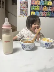 保育園帰ってきて、カレーを完食!🍛スパイシーなのが好きなのね笑