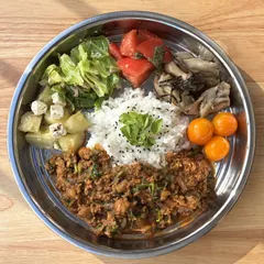 自家製欧風キーマカレー ルーから手作りの欧風カレーでキーマカレー🍛ちょっぴりスパイシーですが甘みと辛味のバランスがめちゃくちゃ良き👍温泉卵を割ればよりマイルドになって美味しい🤤出来上がるまで少し時間はかかるものの、この美味しさが全部吹っ飛ばしてくれます♡隠し味はごま油!!!