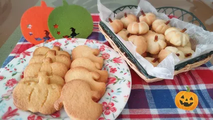 ハロウィン🎃 今年のハロウィンは、お友達へクッキーのプレゼント🎁シナモンパウダーたっぷりの型抜きクッキーと、こっそりチョコレートを包んだかぼちゃのクッキーです家族には、パンプキンプリンケーキ(*´∇`*)娘とふたり、慌ただしくも楽しいクッキングタイムになりました