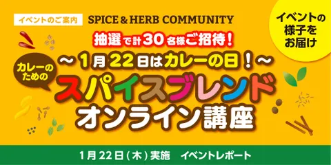 いつもSPICE&HERB COMMUNITYをお楽しみいただきありがとうございます。本日は2026年1月22日(木)に開催いたしました、「1月22日はカレーの日!カレーのためのスパイスブレンドオンライン講座」のイベントレポートをお届けいたします♪今回残念ながらご参加できなかった皆さまにも、レポート