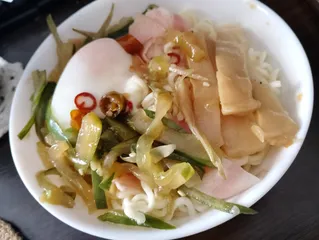 結構前に朝ラーの概念を知り、コンソメやハムベーコンなどパン朝食のような調味料&具材の組み合わせを見ました。似たようなのまた食べくなり、ggって見つけたのがイタリアン油そば。ごま油をオリーブオイルに、お酢をホワイトビネガーに、ラー油をタバスコに置き換えたものだそう。 麺がちょっと水分吸いすぎ