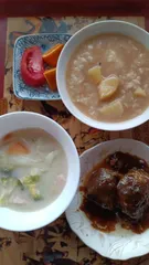 秋の夕食 肉団子、クリーム煮など。温かい食事です。