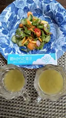 モニターキャンペーンのレシピです。 モニターキャンペーンで届きました。早速、家庭菜園で採れた各種サラダと一緒にいただきました。からだ青汁初めていただきました。妻と一緒に飲みました。美味しかったですよ。