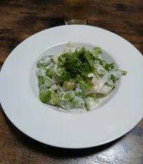 三葉紫蘇がけ 空豆水餃子マヨネーズ和え