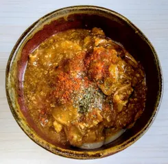 先日作った創作スパイスカレー。途中までは普通のスパイスチキンカレーを作っていたのですが、唐辛子の辛味とトマトの酸味が思ったより強かったので、甘めのお味噌を入れてみたところ発酵の旨味とまろやかさが加わって大成功!生姜もたっぷり入り、どこかほっとするやさしい味わいになりました。どんな食材も受け入れる、ス
