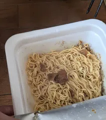 カップ焼きそばは、ソースの香り?あれ?これは、カレーの香り。カレー味のカップ焼きそばは、朝からガッツリ食べたい子どもが作っていました。