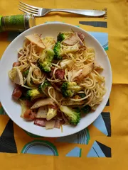 昨日タケノコが格安で売ってたので、早速糠で湯がき薄口醤油と出汁で炊きました。ウィンナーとベーコン、ブロッコリー、タケノコを炒めパスタにしました。タケノコに下味付いててバジルとも合いました。タケノコが好きで毎食献立を代えて春を楽しんでます。