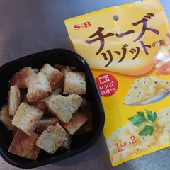 ご飯があればすぐできる「チーズリゾットのもと」でラスクをつくりましたとにかくチーズの味が濃い!そのままでめちゃ旨です オリーブオイルで香りをつけたら、いますぐ赤ワイン持ってこーい!になりましたよクリスマスパーティにもお勧めです