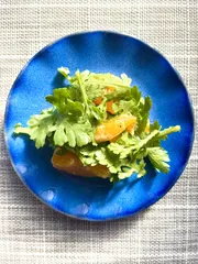 みかん半分、春菊適量、ブラックペッパー適量、オリーブオイル大さじ1、レモン汁適量、塩適量みかんの皮を剥いて果肉を取り出す。ボールにオリーブオイル、ブラックペッパー、塩、レモン汁を入れ、みかんと春菊を混ぜ合わせる。みかんの甘酸っぱさと春菊の苦味が美味しいサラダ。