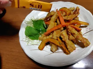 カレー粉スティック カレー粉スティック1本を下味にして豚肉のスティック唐揚げ。スティックのかぼちゃと人参。仕上げにもう一本カレー粉スティックを振りかけて子供があまり好きでない人参も美味しくいただきました