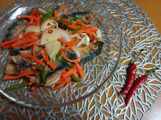 店頭で見て、????となってggったお魚。私は初めて知りました。 「キュウリウオ」という名称で刺身や塩焼きが良いらしい。お安くなってたので試しに購入。マリネはどうだろう、とAIに聞いてみたら(事前にスパイスストックも入力しておいたので)コリアンダーの活用提案してくれました〜。たっぷりの玉葱