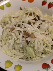 茎わかめサラダ 茎わかめの佃煮とキャベツを和えました。茎わかめは、小学生の頃の給食で初めて食べました。いまでも鮮魚コーナーで見つけるとつい買ってしまいます。