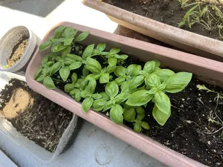元気なバジル 栽培初心者です。 水菜、ミツバ、紫蘇と全部貰った種でぐんぐん育てていましたが、丸1日水やりができず6割あった水菜がほぼ全滅..心苦しい💦 紫蘇もほとんど丸刈にしてしまったので心許ない感じな中、バジルが逞しく待ってくれていました。摘芯?とか全然手入れの勉強をしていないのでこれからす