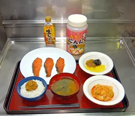 純然たる和食 納豆奏者より 強い御叱りを 受けました。 パッシカリアとフーガ ワ短調 作品目録7 納豆奏者は 賞味期限が 切迫しておりました。 みそ汁に しょうが&にんにく を加えました。 【材料】キムチ漬ごはんしゃけ納豆だいこ
