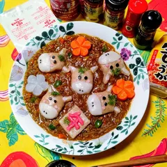 NEW 新春カレー🍛🐎 今年初めてのカレー🍛です。実は当初は午年のみたらし団子🍡を作ろうとしておりました。茶色を出すのにクミン、コリアンダー、オールスパイス+インスタントコーヒーを生地に混ぜていました。ふと💡クミンやコリアンダーを使うならカレーに置いてもいいんじゃね❓となり、予定変更。 カレーは玉ねぎ3個🧅🧅🧅型