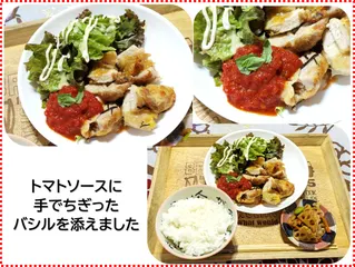 NEW トマトソースを作られたんですね〜 トマト缶を使ってトマトソースを作ると酸味が強く感じますョネ〰️ izuみんさんはコンソメ、醤油、トマトケチャップ、ハチミツ🍯を入れたんですね✨️ チキンにローズマリーを乗せて焼くといい香りがし、手作りのトマトソースと一緒に食べると更に美味しくなりますネ✨️