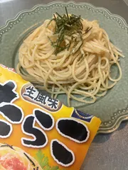 生風味たらこ アレンジなし。ゆでたパスタに合えるだけ。シンプルだから、何度もリピート。