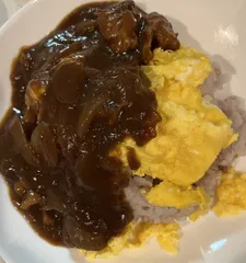 濃いビーフシチューのアレンジです! 卵と一緒に美味しくいただきました😋