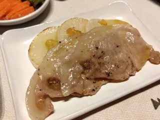 ニンニクとバルサミコ酢で豚肉を焼きました フライパンにオリーブオイルとニンニクを熱して香りを出したら、大根と豚肉を入れて焼きます。焼き上がりで、バルサミコ酢とぶどう酢を入れて煮詰めていきます。とろみが出てきたら出来上がり!ちょっと煮詰め過ぎたのか、かなり甘い仕上がりになりました。
