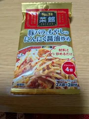 豚バラともやしのにんにく醤油炒めを使いました。 家になぜかあって、もやしがと豚肉があったら作ってしまいます。 炒めて混ぜるだけなので簡単です。 味もあっさりしていて自分好みでした。 付け合わせに、塩だれちぎりキャベツもつけてみました。 これは、いろい