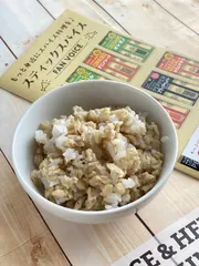 オートミールごはん(オートミール使い切りたい!) 【オートミールごはん(オートミール使い切りたい作戦)】 オートミールがずっとある。今はお菓子もあまり作らなくなったので(特に焼き菓子)オートミールが減らない。 オートミールはペットボトルに入れて冷凍庫に入ってるから鮮度はずっと大丈夫なんだけどジャマくさいので白米ミックスを作ってみ