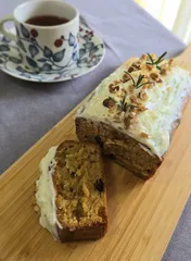 スパイスキャロットケーキ エスビー食品さんのナツメグ、シナモン、コリアンダーを使って、スパイシーなキャロットケーキが焼けました🥕✨ 焼けるときからのシナモンの甘い匂いがたまりませんでした🤣 スパイスを入れることで味が引き締まって深みがある満足感のある味に仕上がりました。 寒い日に大好きなお茶とゆっくり味わ