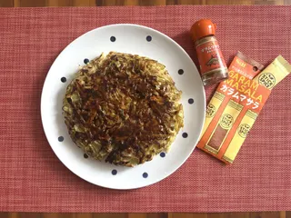 キャベツのスパイスお好み焼き 見た目は地味ですが(・∀・)笑今日の朝ごはんです。生地にもソースにもガラムマサラを入れました。少し辛いですが、体がじわじわ温まる感じがします。ソースにガラムマサラと砂糖を入れる事で甘辛くなってよかったです☆ お好み焼き【材料】◯キャベツの千切り ラーメンどんぶりいっぱい◯小麦粉 大さじ3◯
