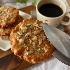 オートミールクッキーをつくりましたシナモン、カルモダン、ジンジャーパウダーを使っています自分好みの味で楽しんでいます☺️
