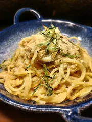 タラコにタラゴン? タラコのパスタで頭に浮かぶのは… クリーム系✨しそ系✨海苔系✨チーズポテト系✨ どれもテンション上がりますが、今回はポテト&チーズで♪という訳で… みじん切りのガーリックとみじん切りのオニオンでオリーブオイルとともにソフリットを そこにレンチンマッシュしたポテ