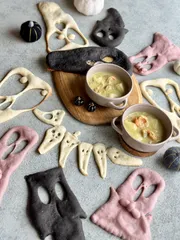 NEW ハッピーハロウィン👻 こんにちは♪ハロウィンでしたね🎃 我が家はナンとココナッツミルクカレーで夕飯♪ イカスミナン(黒い子たち)が人気でした♡ ナンは何故かちびっ子の奴から食べられていく…なんでやろ?!