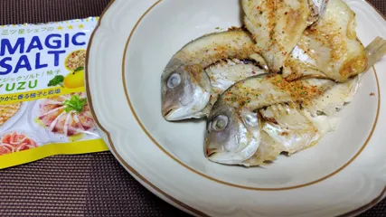 鯛の開きにマジックソルト柚子 焼いた鯛にマジックソルト柚子美味しいです!