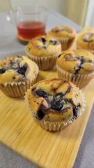ベリー系に合わせるバジルが好きで、ブルーベリーにドライバジルを混ぜたブルーベリーマフィンを作りました! ブルーベリーの酸味とバジルが美味しいんです😋 今回は米粉ではなく生米を粉砕した生米マフィン。 ふんわり、もっちり。自然な甘さで、翌日はしっとり。