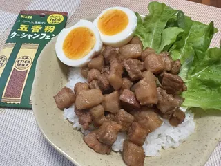 ルーローハン スティックスパイス「五香粉」を使ってルーローハンを作りました(^^)エスビー食品さんのレシピ通りに作りました。とても簡単にできました。ご飯にも合いますし、レタスに巻いて食べても美味しかったです。
