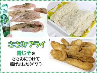 ささみフライに青じそ&梅肉を添えて🐓 ささみフライに「青じそチューブ」を活用しました。そして揚げた後は、「梅肉チューブ」を添え頂きました。 フライがとってもサッパリ美味しく頂けました(*'▽')
