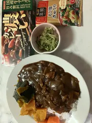 濃いカレー 薄切り豚肉でも濃厚な美味しさ トンボノメガネさんの投稿を読んで、食べたくなり、スーパーをハシゴして「濃いカレー」を購入! 牛肉は買わず、茹でて残っていた豚の薄切りを細かく切って使いました。人参とかぼちゃは炊飯器tacookで、炊飯と同時に蒸したので、野菜の甘味もルーには入っていないのに旨みが濃い!味のついていない根菜と