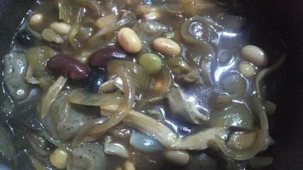今日のカレーです。 いつでもカレー食べてたいんで。でも毎度レトルトはどうなのかなって気も。だけど、いつも材料をそろえてるわけでもなし。 ご飯なしでも、カレーだけでも食べらるように。豆ときのこだけでもおいしくできるか。 玉ねぎが入るとかなりおいしくできるよね。