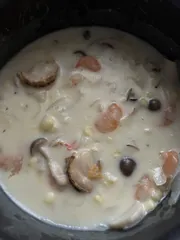 寒くなってきたので 濃いシチューでクリームシチューホタテとエビ エリンギ しめじ玉ねぎ とうもろこしを入れました🥰