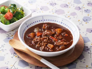 電子レンジで作る ビーフシチュー こんにちは。SPICE&HERB COMMUNITY事務局です。だんだんと涼しい時間が増え、秋の訪れを本格的に感じている方も多いのではないでしょうか。本日は、秋冬になると食べたくなる✨シチューのレシピをご紹介します。火の通りやすい薄切り肉を使い、電子レンジで手軽に作れるビーフシチューです🍽「電子レン