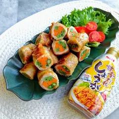 甘辛だれしょうがを使い 見切れ品のいんげんを買っており早く消費しないと💦と思い、同じく茹でたにんじんと一緒に軽く塩胡椒した豚バラ肉で巻きました。いつもは醤油やみりんなどで味付けするのですが、今回は頂いた「甘辛だれしょうが」を使いました。もっとさらっとした液体状と思っていたのに、ペーストタイプでにゅるっと出てきてびっくり!お
