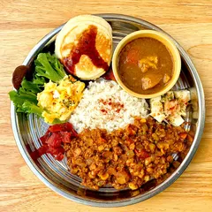 福豆キーマカレー 節分豆をリメイクしてみました。水戻ししたお豆の皮をむくこと238個〜っ!(笑)刻みセロリと玉ねぎたっぷりの食べやすいカレーです。つけあわせは長芋の柚子胡椒あえ。パンケーキにはデーツシロップを添えました。右は今週末(ゴジュウジャー最終回)に合わせて食べようとキープしてあったスーパー戦隊カレーです♪