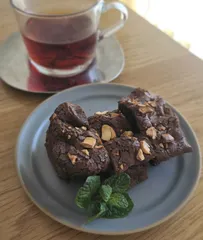 ミント香る チョコミントブラウニー 今日はフレッシュミントをミキサーでペーストにして生地に混ぜ込んだ“チョコミントブラウニー”を作りました🍫🌿チョコ×ミントは定番だけどフレッシュを使うと香りがやさしくて上品。 ミキサーで攪拌すると生地になじみやすく焼き上がりの爽やかさもアップします。濃厚なのに後味はすっきりです😊