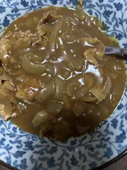 大好きな赤缶カレーパウダールウで豚バラと玉ねぎの カレーを作りお出汁を足してカレーうどんに🥰