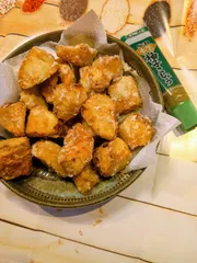 [柚子こしょう味]長芋の唐揚げ 長芋を買ったら沢山入っていて、唐揚げにしてみました。 しょうゆと柚子こしょうで味付けして片栗粉を付けて揚げました。ほんのり柚子こしょうが香るほくほくの唐揚げが出来ました。