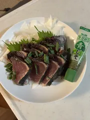カツオの藁焼き 高知の魚やさまからのカツオの藁焼き 青じそを追加です ご馳走様でした
