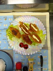 「3種 (あじ・えび・白身魚) フライ トリオソナタ 変フ短調 作品目録37」【材料及び製品】あじフライ(冷食) 2個 えびフライ(冷食) 2個 白身魚フライ(冷食) 2個 ライス(白米) 茶碗1杯分レタス(中ぶり) 2枚 【調味料等】S&Bテーブルコショー あ